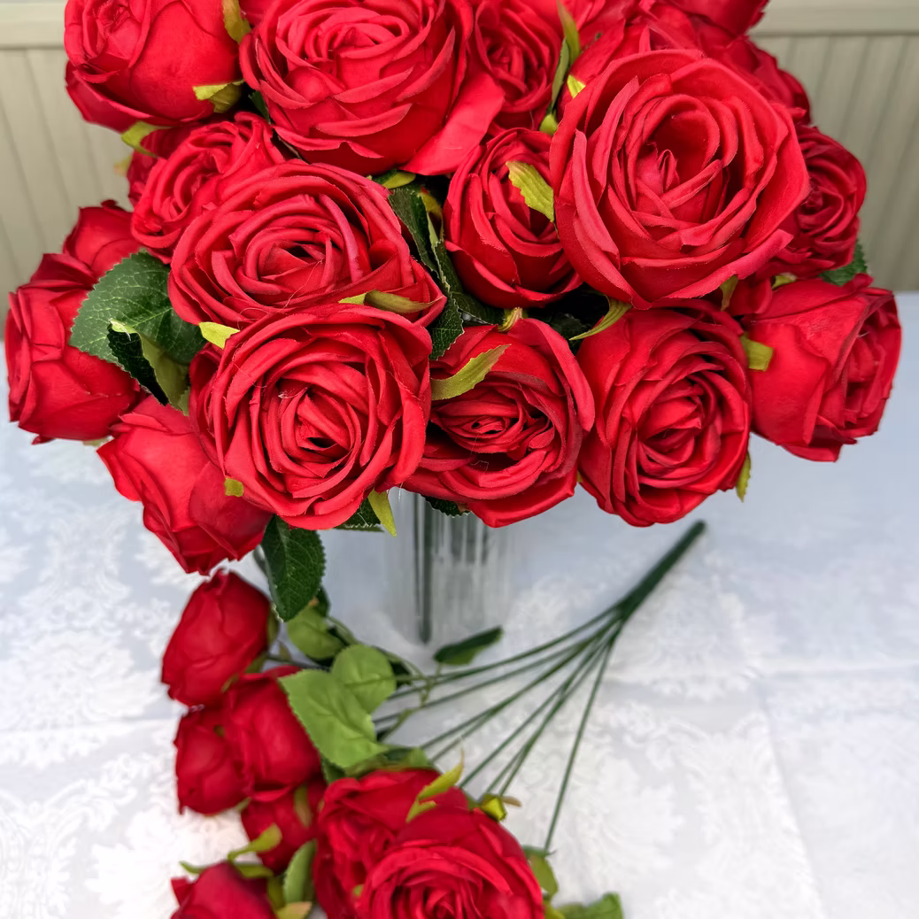 Choose red roses of your like for a bold, passionate look, match the vase color to your Valentine’s style, whether clear, pink or green and add subtle greenery or baby’s breath for texture that enhances the arrangement without overpowering the roses.