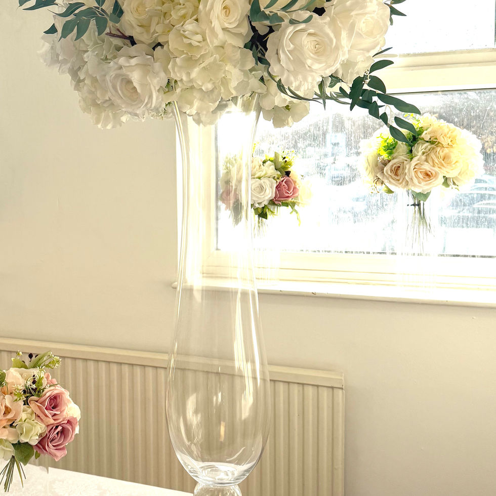 Display Centrepiece, clear vase. Tall elegant glass vase suitable for weddings, birthday party, dinner party, anniversary celebrations showcase beautiful multicoloured or white floral arrangements while complimenting the decor. Material: Glass
